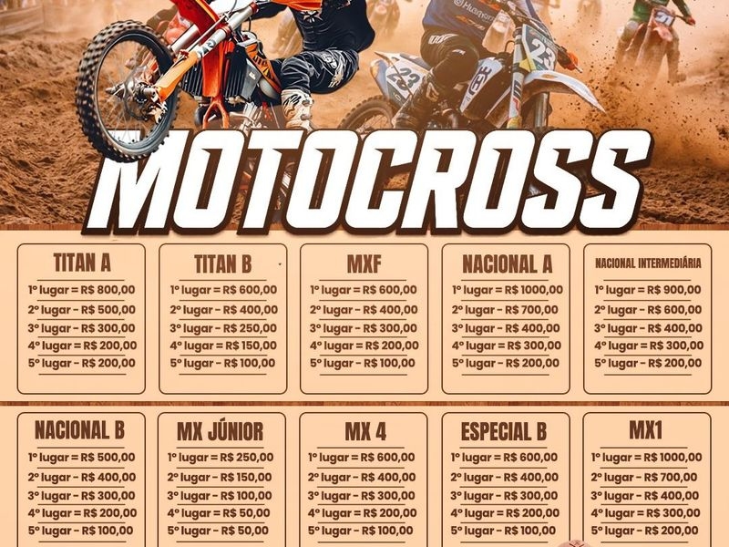 A competição será ampla e inclusiva, abrangendo desde categorias de base e locais até os níveis profissionais. Entre as categorias confirmadas estão: Titan A e B, MXF, Nacional (A, B e Intermediária), MX Júnior, MX 4, Especial B e a categoria principal, MX1, que premiará o vencedor com R$ 1.000,00. Além dos pódios, haverá o prêmio especial Holeshot no valor de R$ 50,00 para todas as categorias, premiando o piloto que fizer a primeira curva na frente.