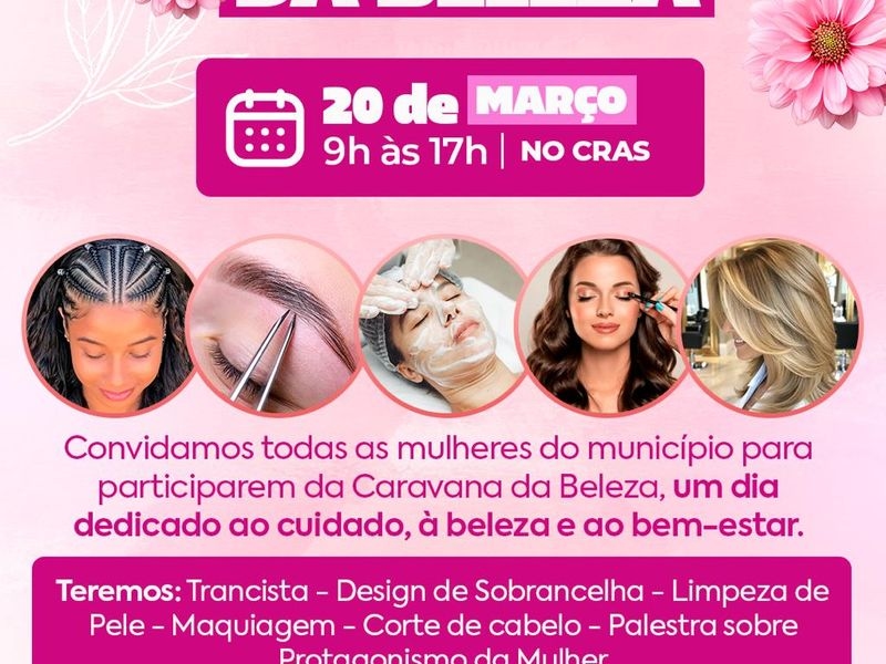 Valorizar a autoestima e o protagonismo feminino é o objetivo central da Caravana da Beleza, evento especial que a Prefeitura de Santa Tereza do Tocantins realiza no próximo dia 20 de março. A programação, totalmente gratuita, será concentrada no Centro de Referência de Assistência Social (CRAS), das 9h às 17h.