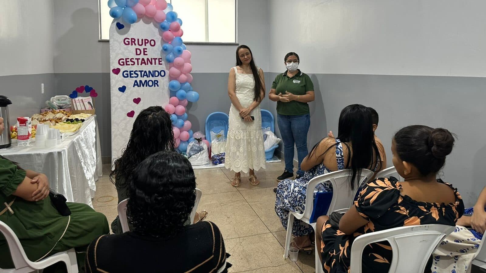 Como forma de incentivo e apoio às gestantes, foi entregues kits de maternidade contendo banheira, macacão, roupas, cueiros e mantas. Ao final da ação, foi servido um café da manhã preparado pela equipe de saúde.