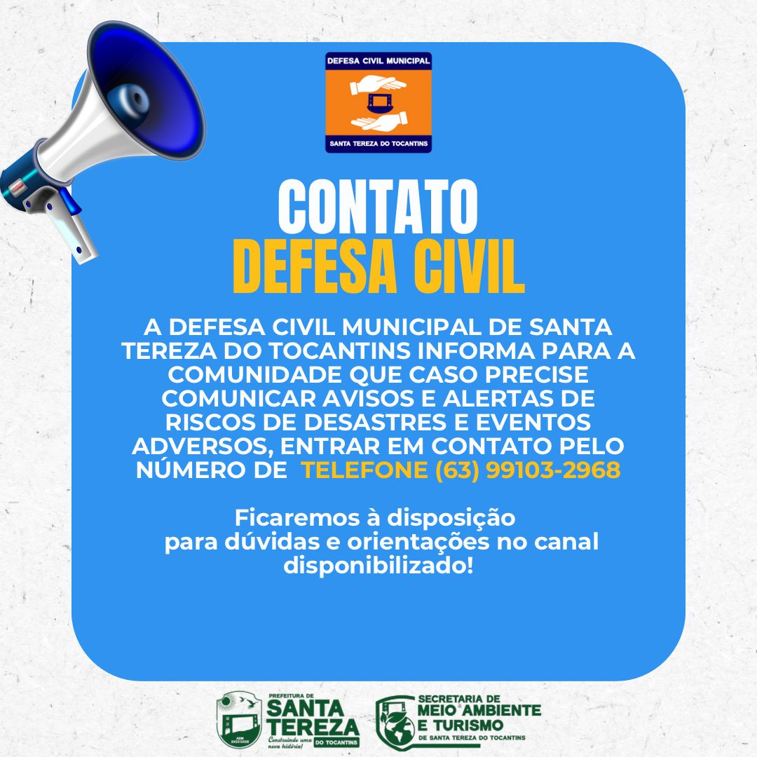 A Defesa Civil de Santa Tereza informa que está disponível um canal exclusivo de comunicação com a comunidade para o envio de avisos, alertas de risco de desastres naturais e outros eventos adversos.