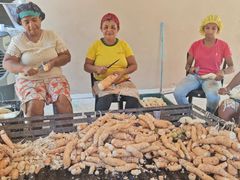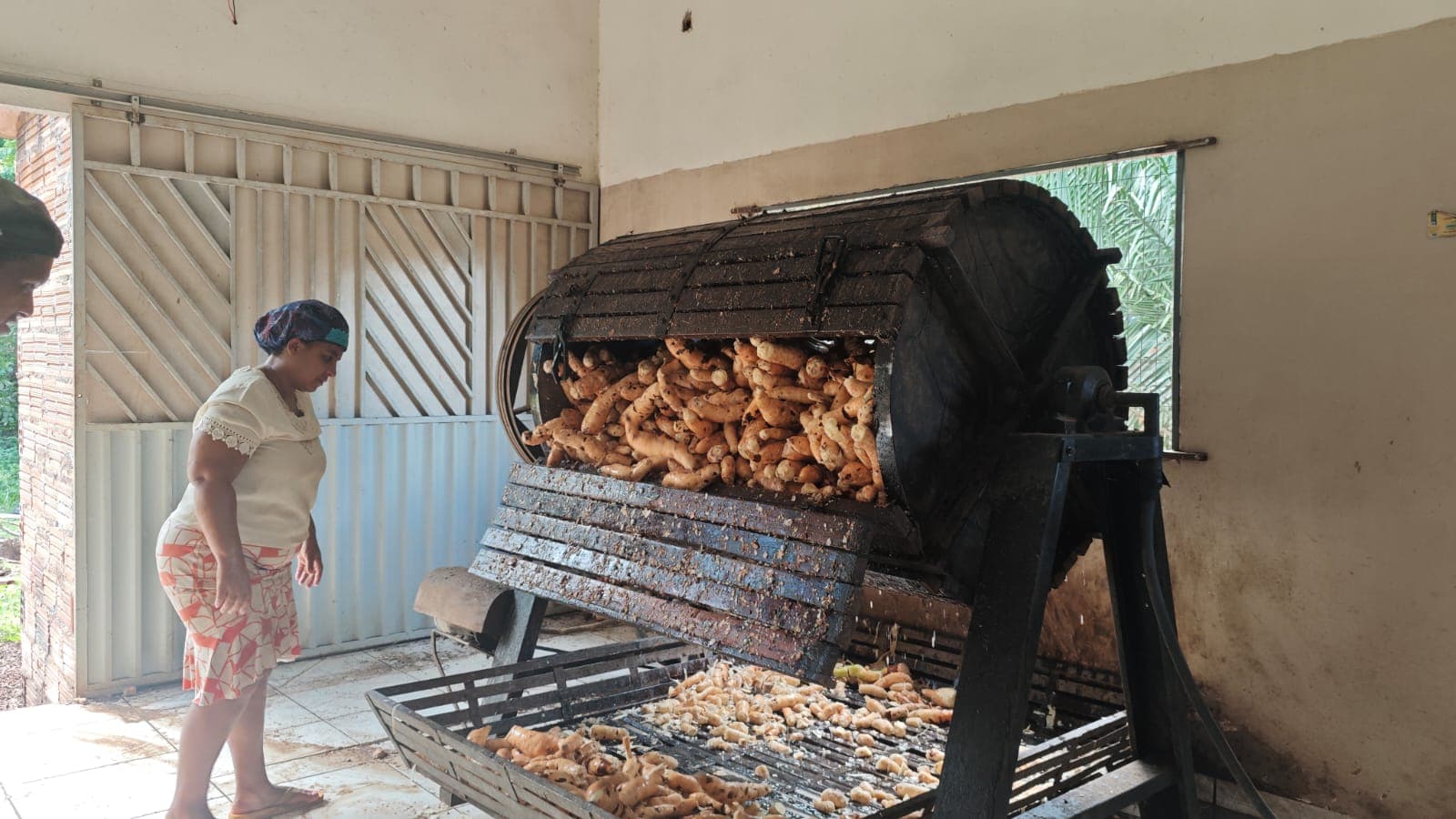 Entre risos, histórias e o cheiro da mandioca fresca, Rita Fernandes Rodrigues transforma a rotina na Farinha do Quilombo em momentos de alegria. Há três anos na produção, ela se dedica com cuidado ao descascar a mandioca, uma tarefa que exige atenção e habilidade, mas que realiza com paixão e orgulho.