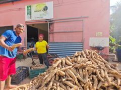 Dona Almerinda Pereira Lima carrega mais de 40 anos de experiência na produção de farinha, muito antes da criação da Farinha do Quilombo. Mulher de trabalho firme e rotina intensa, ela domina cada etapa do processo, da limpeza do espaço à fabricação do produto, e é referência para todos no grupo. Ao seu lado, Lourenço Marques Rodrigues, seu esposo, dedica-se às lavouras, cultivando arroz e a mandioca que é a base de toda a produção, garantindo que o trabalho da fábrica tenha matéria-prima e força para continuar.