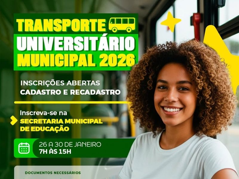 O período de inscrições será curto e intensivo, ocorrendo entre os dias 26 e 30 de janeiro. O atendimento será realizado exclusivamente na sede da Secretaria Municipal de Educação, no horário das 7h às 15h. É fundamental que tanto os novos alunos (cadastro) quanto os veteranos que já utilizam o serviço (recadastro) compareçam para atualizar seus dados e assegurar sua vaga no transporte para o ano letivo de 2026.
